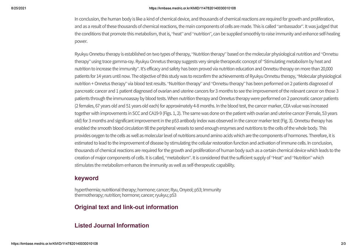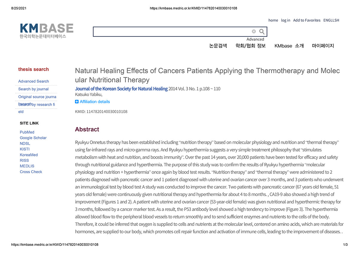 Home » Research and Educational Material » Natural Healing Effects of Cancers Patients Applying the Thermotherapy and Molecular Nutritional Therapy