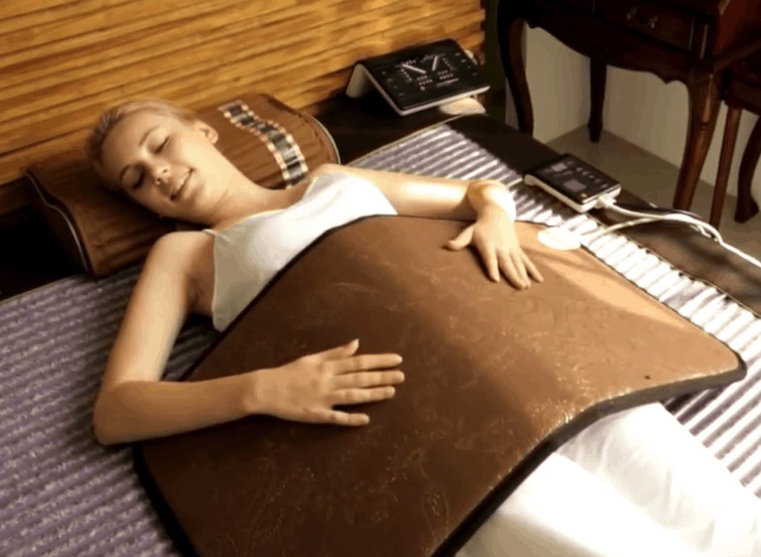 "Far infrared ray emitting Biomat increases blood circulation and oxygen supply to damaged tissues (aiding reduction of joint and muscle pain or sports injuries), promotes relaxation and comfort, induces sleep and relieves as shown in this case study."